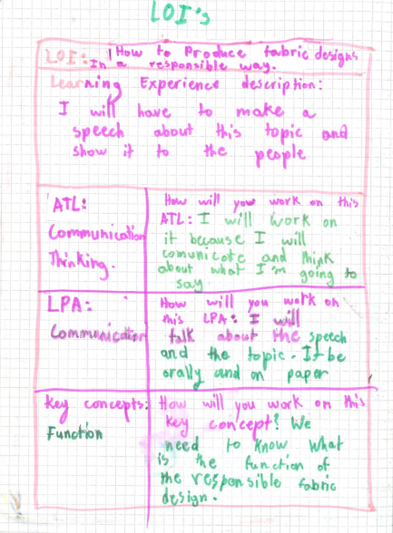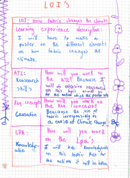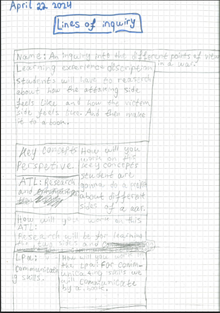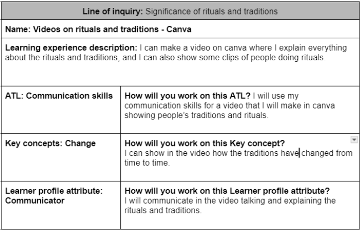 - During the first unit, students choose one line of inquiry and suggest an activity that connects to it.