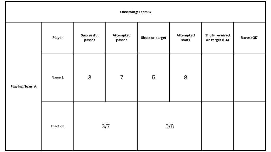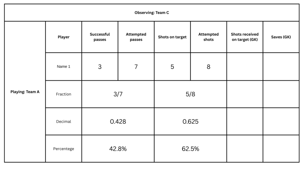 Then you can even compare fractions. For example, if player number 1 completed a fraction of 3/7 of their passes and player number 2 completed 5/9, who was more successful at passing?