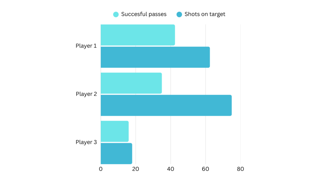 Finally, students convert all stats into bar or line graphs, comparing individual and team performance visually.